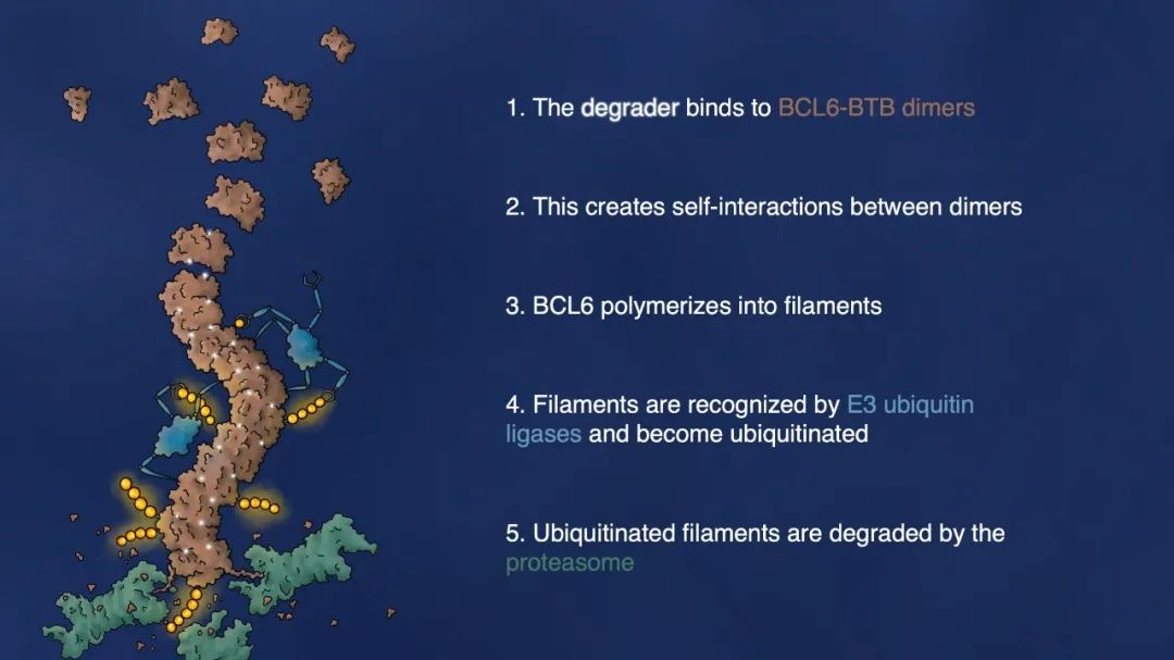 近日,MCE 客户美国哈佛大学 Eric S. Fischer 和 Benjamin L. Ebert 团队在 Nature 发表了题为 Small-molecule-induced polymerization triggers degradation of BCL6 的文章,发现小分子 BI-3802 竟起到了类似 PROTAC 的蛋白降解作用,BI-3802 诱导蛋白聚集,通过泛素——蛋白酶体途径实现蛋白降解。