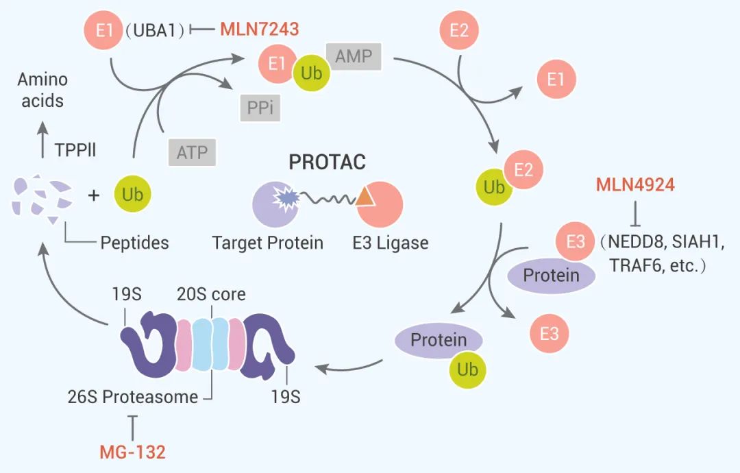 图 2. PROTAC 以及泛素——蛋白酶体途径