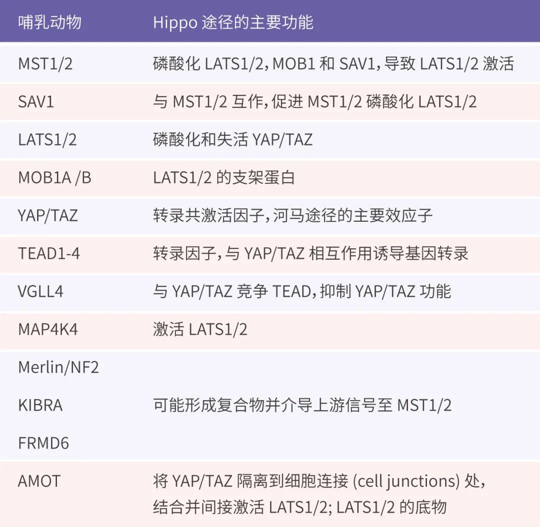 Hippo 途径主要组分与功能[6]