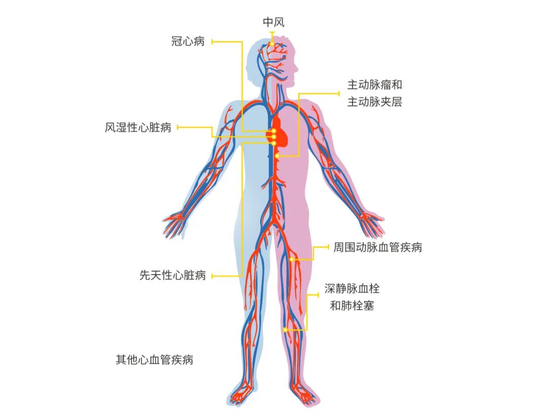心血管疾病 (Cardiovascular diseases, CVDs) 是心脏和血管疾病的统称,主要包括冠心病,脑血管疾病 (例如中风),周围动脉血管疾病,先天性心脏病及深静脉血栓和肺栓塞等疾病。CVD 被称为危害人类健康的“第一杀手”。