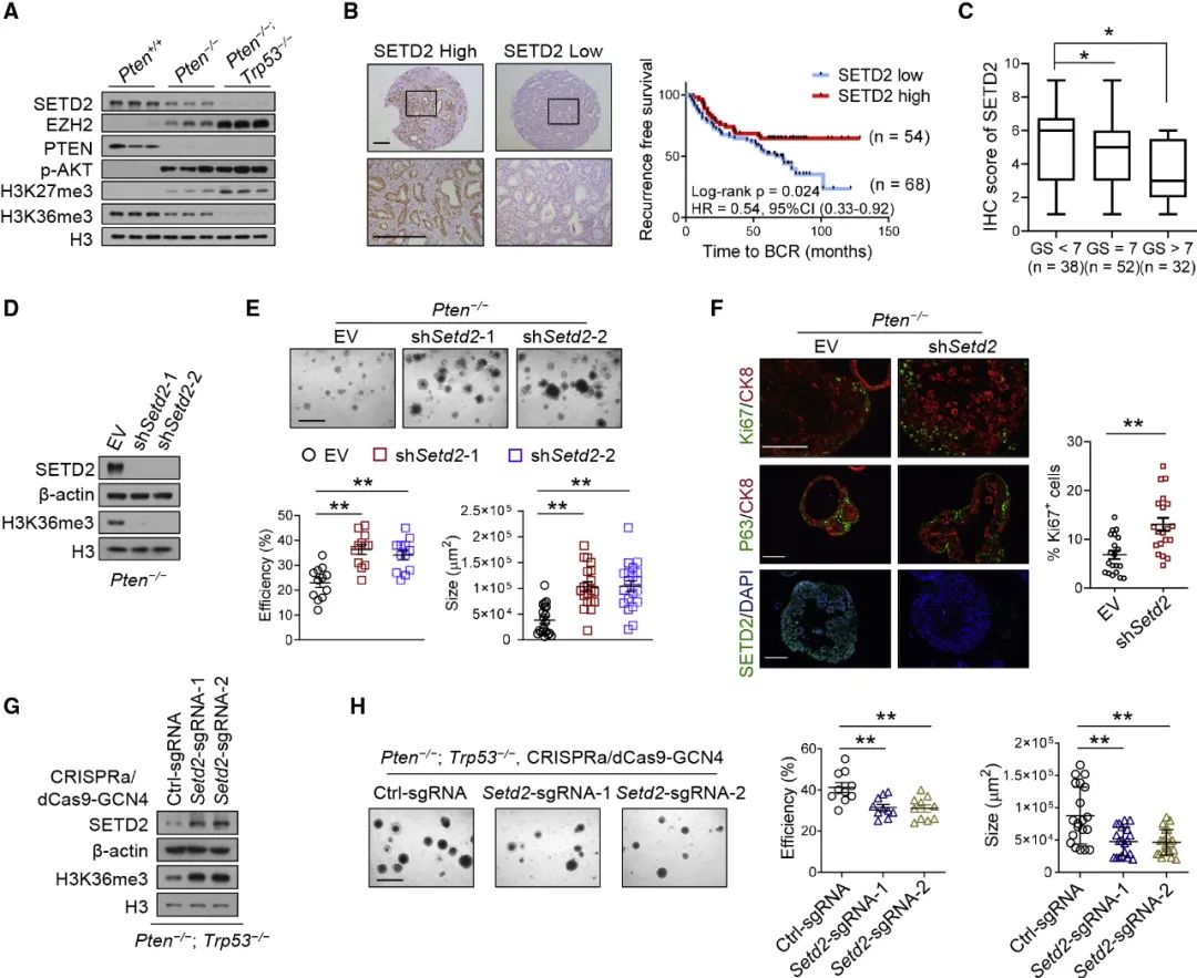 SETD2 在限制前列腺癌发展中发挥重要作用